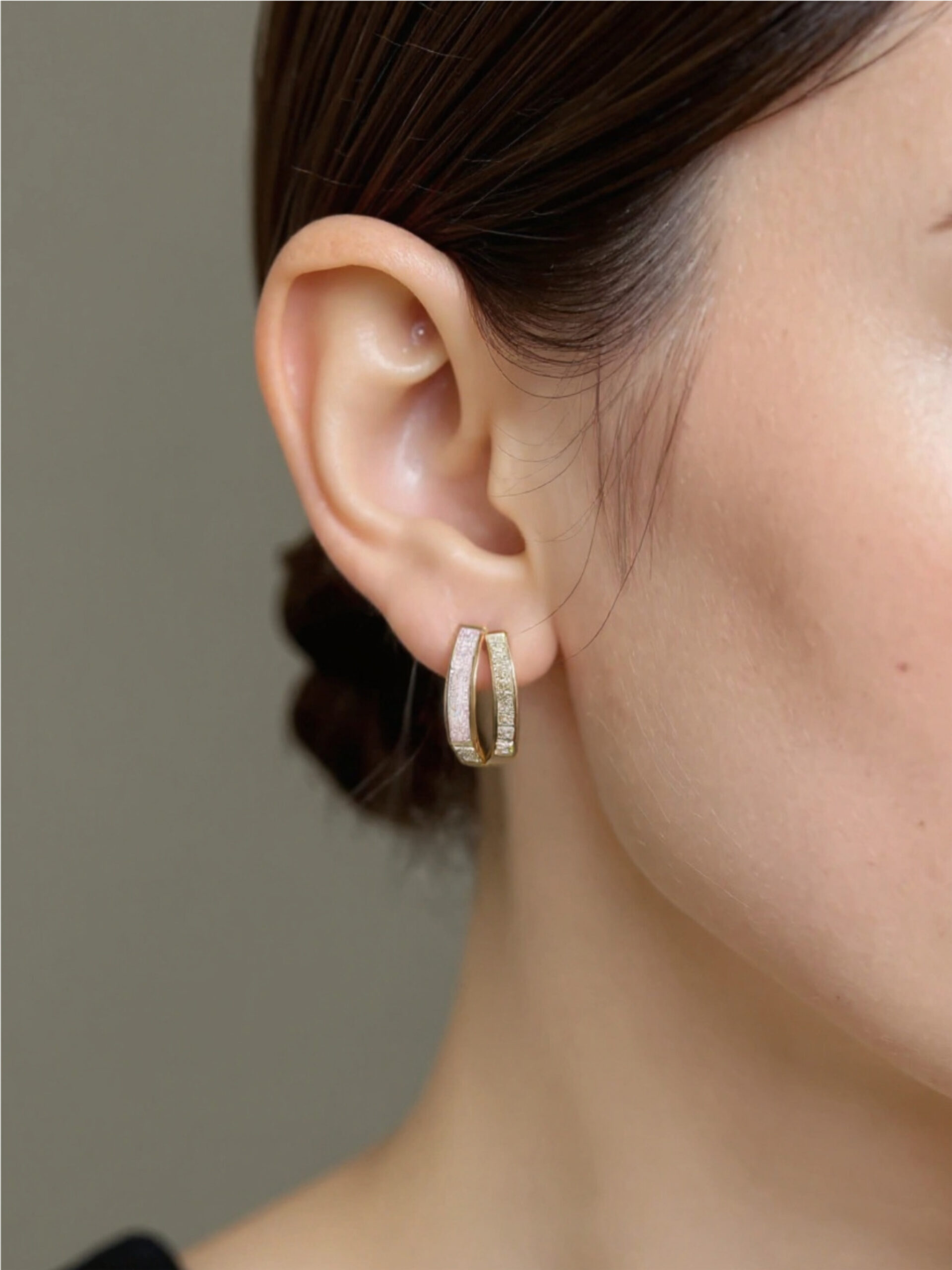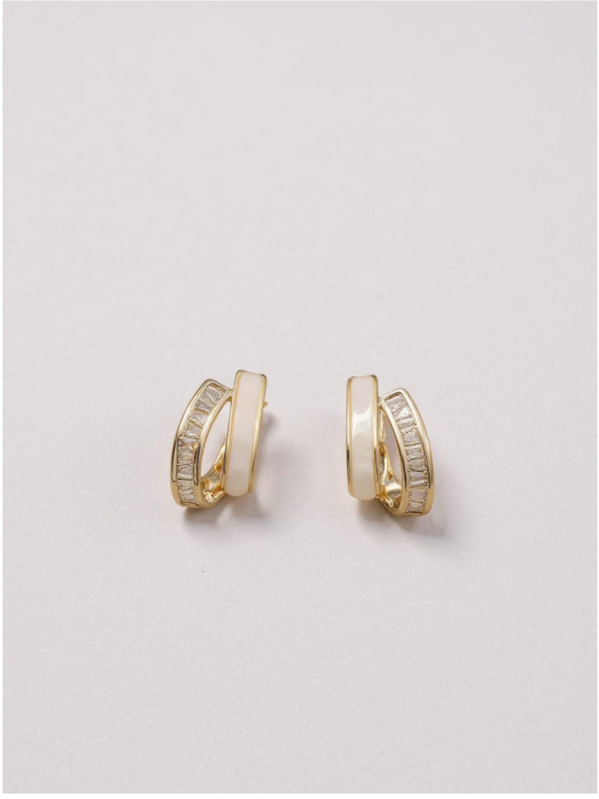 Elegant Double Layer C-Shaped Stud Earrings — golden-plated alloy with sparkling synthetic cubic zirconia inlay.